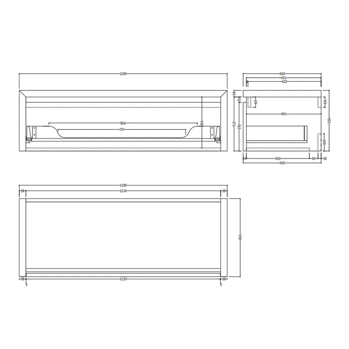 Afmetingen onderkast: 120 × 45 × 35 cm