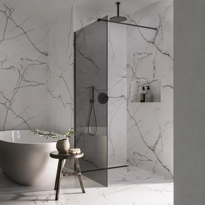 Rookglas is dé trend in de badkamer en met de Saniclear Shade inloopdouche geef je jouw badkamer direct een moderne en luxe uitstraling. Deze stijlvolle douchewand is uitgevoerd in rookglas en afgewerkt met een mat zwart profiel en stabilisatiestang. Het profiel is verkrijgbaar in maar liefst 6 kleuren en de glaswand in 7 verschillende breedtematen, zodat je de inloopdouche perfect kunt afstemmen op jouw badkamer.